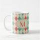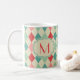Enjoy this retro harlequin look reminiscent of the circus in shades of teal, mint, pink, red and beige. Topped off with your monogram, personalize this mug with your initial or name.