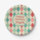 Retro Harlequin Geometric Pattern Personalized Paper Plates