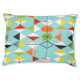 This Retro Harlequin Pattern Dog Bed is mid century modern style at its finest. The vintage inspired design features an aqua background with rows of triangular shapes forming a harlequin pattern. The two-toned diamond shapes are yellow, white, red, orange, black, green, and white with black accents. But wait, there’s more! There are also orange ovals, green ovals with black starbursts, and outlines of black diamonds. Time marches on, but you’ll feel like you’ve found a kitschy blast from the past with this colorful geometric treasure.