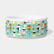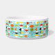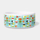 This Retro Harlequin Pattern Ceramic Dog Bowl is mid century modern style at its finest. The vintage inspired design features an aqua background with rows of triangular shapes forming a harlequin pattern. The two-toned diamond shapes are yellow, white, red, orange, black, green, and white with black accents. But wait, there’s more! There are also orange ovals, green ovals with black starbursts, and outlines of black diamonds. Time marches on, but you’ll feel like you’ve found a kitschy blast from the past with this colorful geometric treasure.