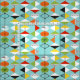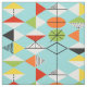 This Retro Harlequin Pattern Combed Cotton Fabric is mid century modern style at its finest. The vintage inspired design features an aqua background with rows of triangular shapes forming a harlequin pattern. The two-toned diamond shapes are yellow, white, red, orange, black, green, and white with black accents. But wait, there’s more! There are also orange ovals, green ovals with black starbursts, and outlines of black diamonds. Time marches on, but you’ll feel like you’ve found a kitschy blast from the past with this colorful geometric treasure.