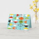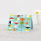 This Retro Harlequin Pattern Greeting Card is mid century modern style at its finest. The front of this vintage inspired design features an aqua background with rows of triangular shapes forming a harlequin pattern. The two-toned diamond shapes are yellow, white, red, orange, black, green, and white with black accents. But wait, there’s more! There are also orange ovals, green ovals with black starbursts, and outlines of black diamonds. The interior of this greeting card is solid aqua with plenty of space for personalizing. Time marches on, but you’ll feel like you’ve found a kitschy blast from the past with this colorful geometric treasure.