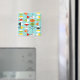This Retro Harlequin Pattern Magnet is mid century modern style at its finest. The vintage inspired design features an aqua background with rows of triangular shapes forming a harlequin pattern. The two-toned diamond shapes are yellow, white, red, orange, black, green, and white with black accents. But wait, there’s more! There are also orange ovals, green ovals with black starbursts, and outlines of black diamonds. Time marches on, but you’ll feel like you’ve found a kitschy blast from the past with this colorful geometric treasure.
