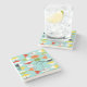 This Retro Harlequin Pattern Marble Stone Coaster is mid century modern style at its finest. The vintage inspired design features an aqua background with rows of triangular shapes forming a harlequin pattern. The two-toned diamond shapes are yellow, white, red, orange, black, green, and white with black accents. But wait, there’s more! There are also orange ovals, green ovals with black starbursts, and outlines of black diamonds. Time marches on, but you’ll feel like you’ve found a kitschy blast from the past with this colorful geometric treasure.