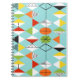 This Retro Harlequin Pattern Notebook is mid century modern style at its finest. The vintage inspired design features an aqua background with rows of triangular shapes forming a harlequin pattern. The two-toned diamond shapes are yellow, white, red, orange, black, green, and white with black accents. But wait, there’s more! There are also orange ovals, green ovals with black starbursts, and outlines of black diamonds. Time marches on, but you’ll feel like you’ve found a kitschy blast from the past with this colorful geometric treasure.