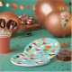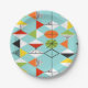 These Retro Harlequin Pattern Paper Plates are mid century modern style at its finest. The vintage inspired design features an aqua background with rows of triangular shapes forming a harlequin pattern. The two-toned diamond shapes are yellow, white, red, orange, black, green, and white with black accents. But wait, there’s more! There are also orange ovals, green ovals with black starbursts, and outlines of black diamonds. Time marches on, but you’ll feel like you’ve found a kitschy blast from the past with this colorful geometric treasure.