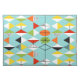 This Retro Harlequin Pattern Placemat is mid century modern style at its finest. The vintage inspired design features an aqua background with rows of triangular shapes forming a harlequin pattern. The two-toned diamond shapes are yellow, white, red, orange, black, green, and white with black accents. But wait, there’s more! There are also orange ovals, green ovals with black starbursts, and outlines of black diamonds. Time marches on, but you’ll feel like you’ve found a kitschy blast from the past with this colorful geometric treasure.
