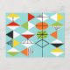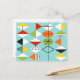 This Retro Harlequin Pattern Postcard is mid century modern style at its finest. The vintage inspired design features an aqua background with rows of triangular shapes forming a harlequin pattern. The two-toned diamond shapes are yellow, white, red, orange, black, green, and white with black accents. But wait, there’s more! There are also orange ovals, green ovals with black starbursts, and outlines of black diamonds. Time marches on, but you’ll feel like you’ve found a kitschy blast from the past with this colorful geometric treasure.