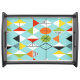This Retro Harlequin Pattern Serving Tray is mid century modern style at its finest. The vintage inspired design features an aqua background with rows of triangular shapes forming a harlequin pattern. The two-toned diamond shapes are yellow, white, red, orange, black, green, and white with black accents. But wait, there’s more! There are also orange ovals, green ovals with black starbursts, and outlines of black diamonds. Time marches on, but you’ll feel like you’ve found a kitschy blast from the past with this colorful geometric treasure.