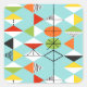 These Retro Harlequin Pattern Stickers are mid century modern style at its finest. The vintage inspired design features an aqua background with rows of triangular shapes forming a harlequin pattern. The two-toned diamond shapes are yellow, white, red, orange, black, green, and white with black accents. But wait, there’s more! There are also orange ovals, green ovals with black starbursts, and outlines of black diamonds. Time marches on, but you’ll feel like you’ve found a kitschy blast from the past with this colorful geometric treasure.
