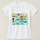 This Retro Harlequin Pattern T-Shirt is mid century modern style at its finest. The vintage inspired design features an aqua background with rows of triangular shapes forming a harlequin pattern. The two-toned diamond shapes are yellow, white, red, orange, black, green, and white with black accents. But wait, there’s more! There are also orange ovals, green ovals with black starbursts, and outlines of black diamonds. Time marches on, but you’ll feel like you’ve found a kitschy blast from the past with this colorful geometric treasure.