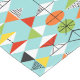 This Retro Harlequin Pattern Table Runner is mid century modern style at its finest. The vintage inspired design features an aqua background with rows of triangular shapes forming a harlequin pattern. The two-toned diamond shapes are yellow, white, red, orange, black, green, and white with black accents. But wait, there’s more! There are also orange ovals, green ovals with black starbursts, and outlines of black diamonds. Time marches on, but you’ll feel like you’ve found a kitschy blast from the past with this colorful geometric treasure.