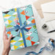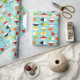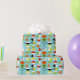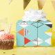 This Retro Harlequin Pattern Wrapping Paper is mid century modern style at its finest. The vintage inspired design features an aqua background with rows of triangular shapes forming a harlequin pattern. The two-toned diamond shapes are yellow, white, red, orange, black, green, and white with black accents. But wait, there’s more! There are also orange ovals, green ovals with black starbursts, and outlines of black diamonds. Time marches on, but you’ll feel like you’ve found a kitschy blast from the past with this colorful geometric treasure.