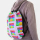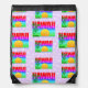Retro Hawaii Sunset Beach Purple Hibiscus Drawstring Bag