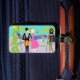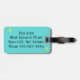 Mele Kalikimaka! This customizable Retro Hawaiian Christmas Luggage Tag features a minimalist cartoon drawing of an attractive couple taking the holiday trip of a lifetime! The mid century modern scene is set in a tropical airport. Mr. and Mrs. Tourist are posing in front of the floor to ceiling glass walls. After all, they want to document every moment of their vacation to paradise. Mr. Tourist is dressed in a black suit, light blue shirt, red tie, and black fedora. He is holding an orange suitcase. His arm is around his beautiful bride. She is wearing a hot pink dress. A bright blue handbag is slung over one arm. A Santa hat is gracing her blonde head. It wouldn't do to travel by air and not look your best! Both of them are wearing colorful flower leis around their necks. Beside them, we see a stunning, golden skinned hula girl with flowing black hair. Miss Hula is wearing a traditional grass skirt. Her hula top has a festive twist, however. Her bikini top is red with white trim. Eat your heart our, Mrs. Claus! Instead of a flower, she is wearing a sprig of holly in her hair. On one arm, she has an extra Hawaiian lei ready to offer the next person to step off the plane. Ah, can't you smell the orchids now? On the opposite side of the couple, there is a Christmas tree that has been given an island makeover. The happy cedar is decked out with pastel seashells and starfish. On the opposite side of the glass, we can see the luxury, jumbo jetliner that brought the couple to their vacation destination. On the tarmac, 1960's style flight attendant is making her way to the building. She is wearing a form fitting, blue uniform and a blue pillbox hat. Yowza! That gorgeous blonde can offer me coffee, tea, or milk anytime! The sky a shade of aqua that makes you want to reach for the suntan oil! We can see the green silhouettes of palm trees and the dark blue silhouette of a plane flying among the fluffy, light blue clouds. Oh, I hope those poor suckers on that plane aren't on their way back to the daily grind! Aloha! The opposite side of the tag features an aqua background and plenty of room for personalizing with your contact information.
