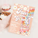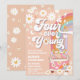 Celebrate in groovy style with this retro hippie birthday invitation featuring peace signs, daisies, rainbows, and a flower-power van. Perfect for a 4th birthday party, this playful design captures the spirit of peace, love, and fun while setting the tone for a joyful celebration. The vibrant colors and whimsical details make it ideal for kids parties, retro-themed events, or any cheerful gathering. Personalize with your childs name, party details, and create a keepsake guests will love.
