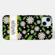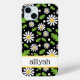 This iphone 15 plus phone case is so cute and girly! It's hippie 70s daisy floral pattern with multi-sized white and yellow daisies on a black background and your name in a fun trendy font will go with everything! It will look fabulous on your phone!