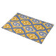 Retro placemat with psychedelic eye pattern indigo blue and honeycomb yellow colors. This fun eclectic quirky pattern resembles retro modern mid-century style due to its geometric shapes.