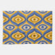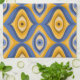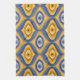 Psychedelic kitchen towel with weird eye pattern indigo blue and honeycomb yellow colors. This fun eclectic quirky pattern resembles retro modern mid-century style due to its geometric shapes.