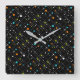 Retro Hipster Black Space Age Atomic Square Wall Clock