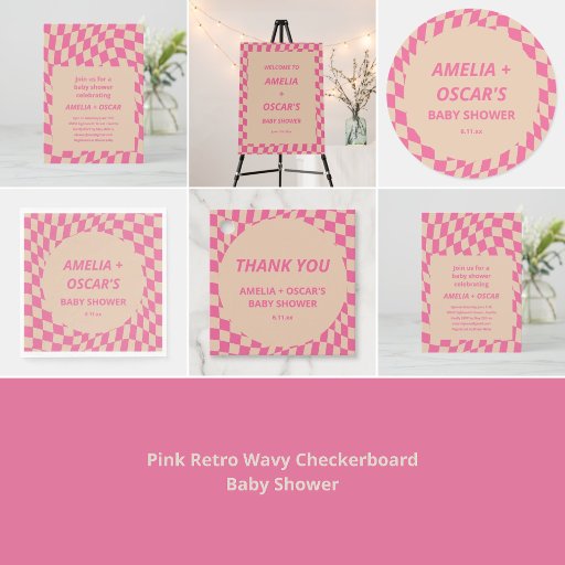 Pink Retro Wavy Checkerboard Baby ShowerDesigned by Opal Ellery