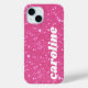Retro Hot Pink Glitter Sparkle Personalized Name iPhone 15 Case
