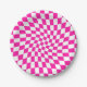 Retro Hot Pink Warped Checkerboard Paper Plates
