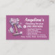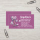 Cute cleaning card, cartoon maid design, retro cleaning style, purple card, magenta card, flower business card, house cleaning business card