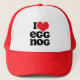 Egg nog is a special holiday treat. Let everyone know how much you love the rich & yummy drink with this fun, retro-inspired trucker hat design that reads, "I Love (Heart) Egg Nog."