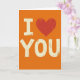 This card shows a bright orange background with the message “I ❤️ YOU” stacked in a tall column down the center. The “I” at the top and “YOU” at the bottom are in off-white, simple printed letters that are easy to read. In the middle, a deep red heart stands in for the word “love,” and its slightly uneven shape makes it feel human and sincere ❤️. The whole design has a worn, speckled look, like an older poster that’s been kept and reread over the years. That little bit of fading and scuffing makes the message feel familiar, like something you’ve meant for a long time. It’s a straightforward way to say what matters, whether you’re giving it to a partner or someone you care about as a close friend 🥰. Share it to pass along a little Valentine’s Day love and kind feelings.
