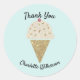These cute "Thank You" stickers feature a retro mint green colored background with a cute glitter design ice cream cone. The cone of the ice cream is printed in a faux gold glitter design while the ice cream portion is an ivory glitter with gold sprinkles. A pink glitter cherry is placed on top.