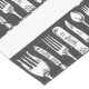 Stylish and unique black and white design of retro illustrated cutlery on table runner.