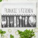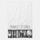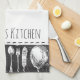 Stylish personalized kitchen towel with retro illustrated cutlery design in black and white. (color available to customize)
