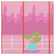 This Retro In the Pink Fabric looks like a scene out of a 1960's romantic comedy. The minimalist design shows a sophisticated woman in her ultra kitschy and ultra pink, penthouse apartment. The room features a pink brick wall with white grout lines. In front of the wall, there is a green cone fireplace with a roaring fire. Through sliding glass doors we see a pink balcony with a white railing. A lush, tropical plant is in an aqua flowerpot. The view from the balcony is of a silhouette of a big city skyline. Of course, the silhouette is in shades of pink! A yellow, crescent moon is in the sky. Standing on a hot pink, shag rug in the apartment is the leading lady of this design. In stark contrast to the rosy world she has created, the beautiful blonde is wearing a form fitting, black, scoop-necked top with a long, flared, white skirt with black feather embellishments. With this design, you too can be looking at the world through rose colored glasses!