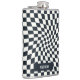 Modern but retro psychedelic checkered dark indigo blue and white flask