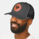 Custom Leather Patch Hat, Sytle: Adult Retro Trucker Cap, Color: Heather / Black, Shape: Circle