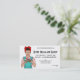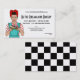 This retro inspired designs features a 1950's woman wearing a red and white polka dot dress with a teal apron. Her curly brown hair is wrapped in a matching red head wrap. She is holding a plate of yummy and colorful cupcakes. This versatile design has plenty of text and can be customized for any baking business. The flip side of this vintage card features a customizable black and white checkerboard pattern.