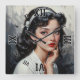 Retro Inspired Portrait of Thoughtful Young Woman Square Wall Clock