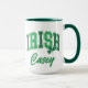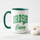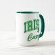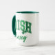 Show your Irish pride with this fun two-toned coffee mug that features the word "IRISH" in a curved retro varsity-lettering font in distressed colors of light and dark green. Personalize by adding your name or special text. A great accessory for the St. Patrick Day season.