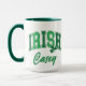 Show your Irish pride with this fun two-toned coffee mug that features the word "IRISH" in a curved retro varsity-lettering font in distressed colors of light and dark green. Personalize by adding your name or special text. A great accessory for the St. Patrick Day season.