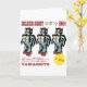 This great retro Japanese toy robot advertisement design shows a commercial for a terrific new Soldier Robot toy. It even has a description of the toy in Japanese, which translates as "This walking robot makes war sounds! You can fight the war to save the world from danger! Play with friends or at home!" - this is a must for anyone who loves Japanese style or retro designs, especially those vintage styles evoking decades gone by, and in particular the 1950s and 1960s, when this kind of advert would have appeared in response to the science fiction that mirrored the Space Age.