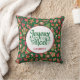 This fabulous Christmas folk art 16" x 16" green pillow with a pattern of santas, gingerbread men, Christmas trees, ornaments, angels and presents that says Merry Christmas in French "Joyeux Noel" and has your last name would look awesome on your couch, bed or chairs! It's so festive and will go with any Christmas decor - it's rustic yet retro and modern yet traditional! It'll look fantastic and add that little extra Christmas touch to your home!