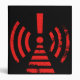 Striking retro-futuristic hazard icon with pulsing red lines and a distressed warning, old-school terminal screen vibes.
