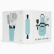 Retro bridal shower recipe book featuring a turquoise blue & white polka dot apron with kitchen tools. Visit our shop to view matching bridal shower invites & recipe cards.