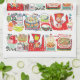 A colourful mid century kitsch cookbook illustration on a quality kitchen towel. Very bright and cheerful, Makes a perfect housewarming or hostess gift. Available in your choice of background colour. A lovely retro addition to any modern vintage kitchen.
