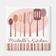 A collection of fun, retro styled cooking and eating utensil decorates this personalized kitchen magnet. In pretty shades of rose, mauve, pink and cocoa. More color schemes available: