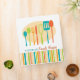 Retro style implements for cooking and eating are featured on this cool recipe binder in classic shades of brown, teal, lime and orange. Customize the text on the cover and spine with your family name or other message.