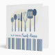 Retro style implements for cooking and eating are featured on this cool recipe binder in shades of blue. Customize the text on the cover and spine with your family name or other message.