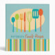 Retro style implements for cooking and eating are featured on this cool recipe binder in classic shades of brown, teal, lime and orange. Customize the text on the cover and spine with your family name or other message.