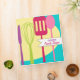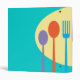 Retro style implements for cooking and eating are featured on this cool recipe binder in bright shades of pink, lime, purple blue, yellow and teal. Customize the two lines of text on the cover with your family name or message.